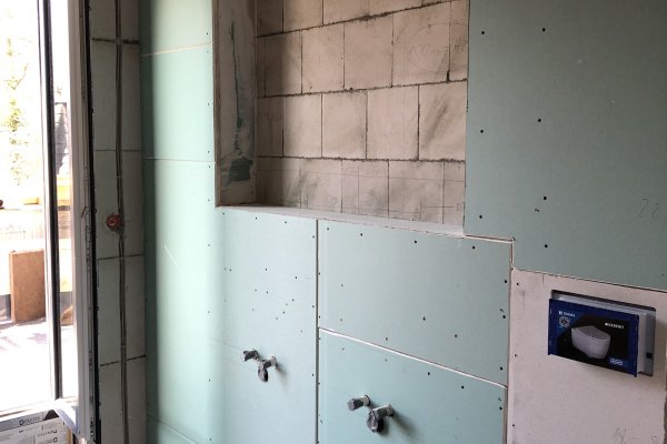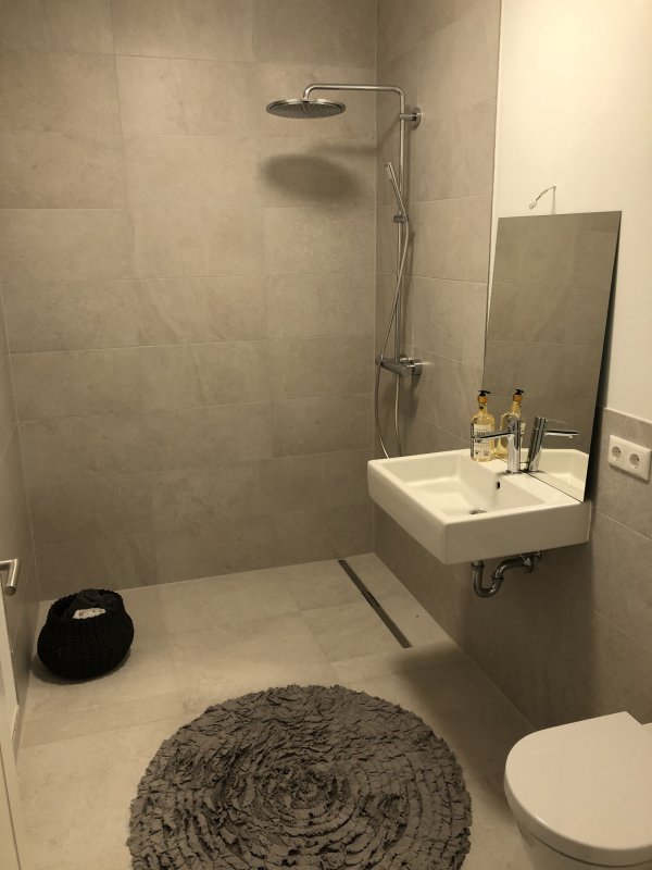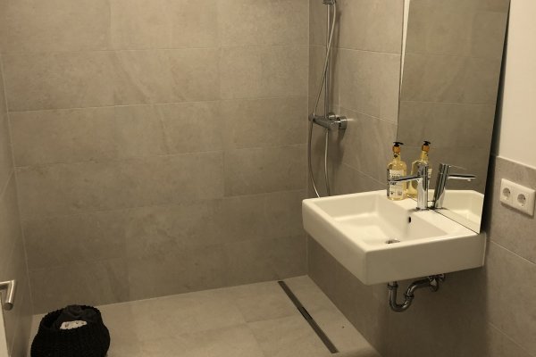 Ebenerdige geflieste Dusche inkl. Punktentwässerung und Badewanne